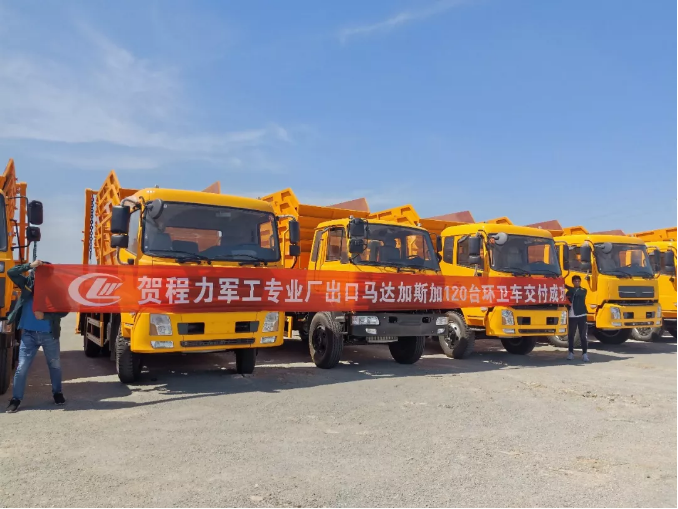 湖北程力汽車120輛擺臂式垃圾車出口馬達(dá)加斯加,為保護綠色地球打贏藍(lán)天保衛(wèi)戰(zhàn)貢獻(xiàn)中國力量