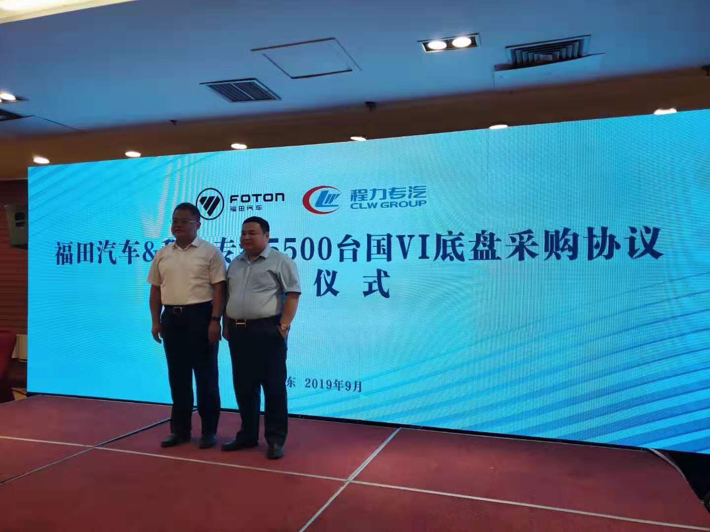 2019年9月6號.中國.山東諸城。福田汽車與程力專用汽車股份有限公司(程力專汽)戰(zhàn)略合作溝通交流會。福田汽車與程力專用汽車股份有限公司簽約5500臺國六汽車底盤協(xié)議,國六的時代已經(jīng)來臨,藍天保衛(wèi)戰(zhàn)我們在路上!為我們專用汽車生產(chǎn)做好充分有力保障。