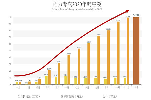 湖北程力公司在2020年初制定的專汽產(chǎn)值原本是完成70億目標,但隨著一場突如其來的疫情災(zāi)害影響,直接停產(chǎn)一個半月,耽誤產(chǎn)值13億元;對此,以程阿羅總經(jīng)理為首的高層團隊精準研判科學(xué)施策,面對疫情不畏困難,將沖刺目標調(diào)高到75億;一手抓疫情防控一手抓復(fù)工復(fù)產(chǎn),積極應(yīng)對逆勢而上,大膽創(chuàng)新及時推出高端負壓救護車、醫(yī)療廢棄物轉(zhuǎn)運車、疫情消毒車、應(yīng)急搶險車、核酸取樣檢測車等適銷對路的緊缺產(chǎn)品,馳援全國及國際疫情防控第一線,與病毒擴散搶時間、奪戰(zhàn)場,把耽誤的時間補回來,把失去的市場占領(lǐng)回來。 2020年三月份以來,湖北程力專汽及應(yīng)急產(chǎn)品的生產(chǎn)銷售一直持續(xù)快速的攀升,平均增長速度超過了20%,遙遙領(lǐng)先于同行業(yè)的其他生產(chǎn)廠家,高于歷史同期增長水平,打了一個漂亮的翻身仗,截止12月25日上午10:38分,專汽產(chǎn)值提前6天順利完成75.58億,交出了一份令人滿意的答卷。