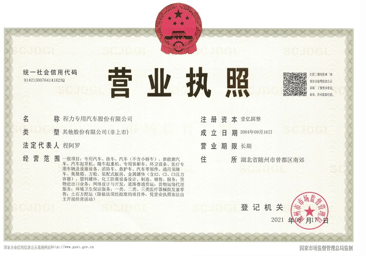 程力汽車 程力集團 程力專用汽車股份有限公司開票信息和營業(yè)執(zhí)照