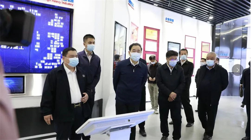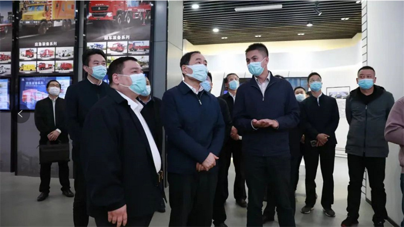 右上圖:湖北省副省長趙海山(左二)、隨州市政府副市長黃繼軍(左三)與程力汽車集團(tuán)董事長程阿羅(左一)等負(fù)責(zé)人參觀程力專汽5G數(shù)字云展廳。 程力集團(tuán)高質(zhì)量發(fā)展的重大舉措引起了湖北省領(lǐng)導(dǎo)的高度重視,近日,趙海山副省長一行領(lǐng)導(dǎo),在隨州市副市長黃繼軍、曾都區(qū)區(qū)委姜晧,以及隨州市、曾都區(qū)政府職能部門負(fù)責(zé)人的陪同下,赴程力汽車集團(tuán)進(jìn)行專題調(diào)研,他首先參觀了程力汽車集團(tuán)5G數(shù)字云展廳,對程力集團(tuán)跨越式發(fā)展與對地方經(jīng)濟(jì)建設(shè)的貢獻(xiàn),表示了充分肯定;鼓勵(lì)企業(yè)以新技術(shù)、新材料、新工藝為重要抓手,以研發(fā)生產(chǎn)氫燃料動(dòng)力整車和新能源商用車暨應(yīng)急裝備產(chǎn)品轉(zhuǎn)型升級為突破口,一心一意謀發(fā)展,堅(jiān)定不移地走科技創(chuàng)新和綠色環(huán)?沙掷m(xù)發(fā)展之路。