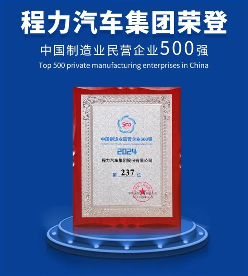 程力汽車集團再次榮登2024中國民企500強,改革創(chuàng)新建世界一流企業(yè)