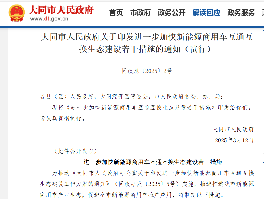 3月19日 (下午)三部門聯(lián)合升級貨車更新政策:交通運輸部、發(fā)改委、財政部將老舊貨車補貼范圍擴展至國三/國四排放車輛,取消燃料類型限制。根據(jù)新規(guī),提前報廢并更換新能源貨車的企業(yè)最高可獲14萬元/車補貼,購置國六車型補貼7萬元。政策特別設(shè)置"綠色通道",對參與氫燃料電池車示范運營的企業(yè)額外給予3萬元運營補貼。支持資金按照總體9:1的原則實行央地共擔(dān)。 3月20日 湖北省確定汽車產(chǎn)業(yè)“雙百萬”目標 湖北省分別發(fā)布了《支持全省汽車產(chǎn)業(yè)發(fā)展若干措施(2024—2027年)》和《2025湖北省新能源汽車促消費政策》,將進一步助力2025年“湖北造”新能源汽車產(chǎn)量邁上100萬輛臺階的目標。 3月21日 大同構(gòu)建新能源商用車生態(tài)圈 3月29日 央企重組開啟產(chǎn)業(yè)新格局 3月,財政部的扶持政策不僅延長了購置稅減免期限,還加大了對充換電基礎(chǔ)設(shè)施和智能網(wǎng)聯(lián)技術(shù)的投入,為新能源專用車的市場推廣和基礎(chǔ)設(shè)施建設(shè)提供了有力保障。此外,三部門聯(lián)合升級的貨車更新政策,提供了豐厚的補貼,將促進新能源專用車的銷售。湖北省確定汽車產(chǎn)業(yè)“雙百萬”目標不僅為當(dāng)?shù)?/span>提供了政策支持和市場需求保障,還促進了產(chǎn)業(yè)鏈的協(xié)同發(fā)展和新能源專用車的普及推廣。這一系列政策將有助于推動新能源專用車產(chǎn)業(yè)的快速發(fā)展和壯大。 |