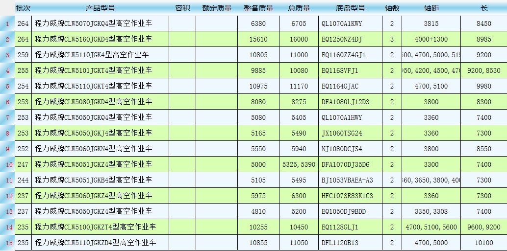 湖北程力高空作業(yè)車國四公告車型有哪些?