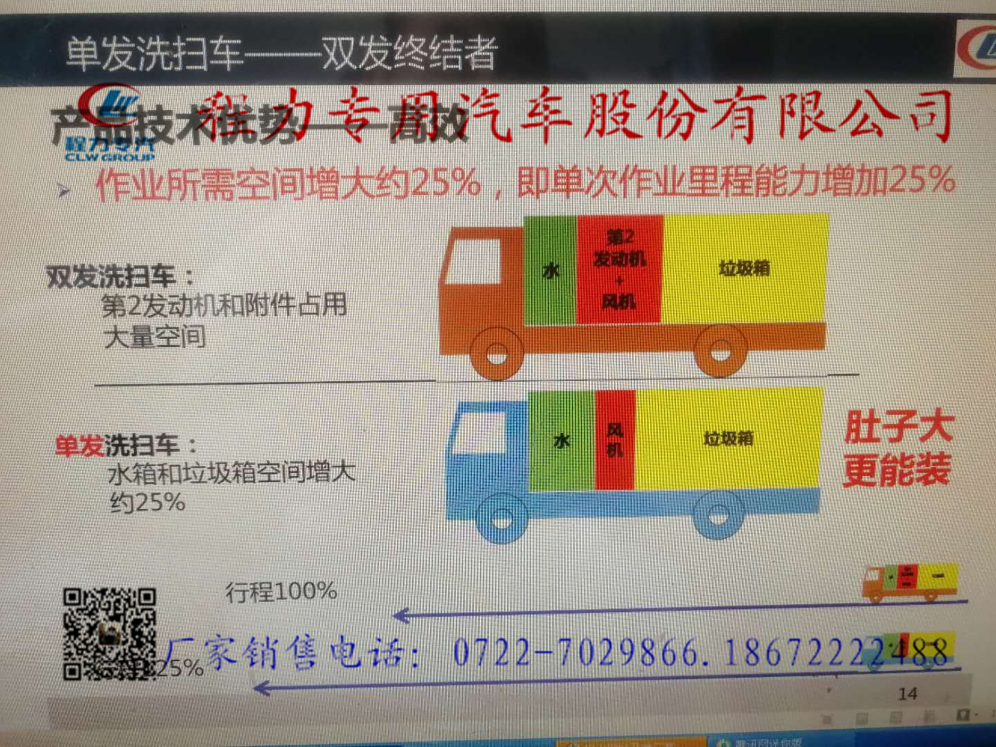 湖北程力掃路車第三屆交流大會(huì)新品發(fā)布《單發(fā)動(dòng)機(jī)洗掃車》 。湖北程力掃路車新品發(fā)布會(huì)上鄧博士講解單發(fā)洗掃車工作原理,單法洗掃車,真正國五排放,較雙發(fā)洗掃車工作效率提升20%,油耗降低18%,操作系統(tǒng)更平穩(wěn),符合國家節(jié)能減排大趨勢,值得推廣! 湖北程力公司生產(chǎn)的掃路車具有被用戶普遍首肯的清掃、抽吸效率高,作業(yè)性能穩(wěn)定等特點(diǎn)。被廣泛應(yīng)用于城市街道、廣場、碼頭、機(jī)場、高架橋等場所的地面清掃、保潔。 |