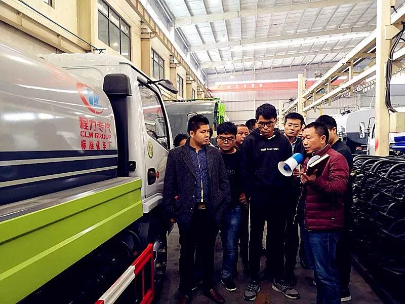 程力環(huán)衛(wèi)車標準化廠王成廠長向學員們講解程力新標準水車的生產工藝流程。