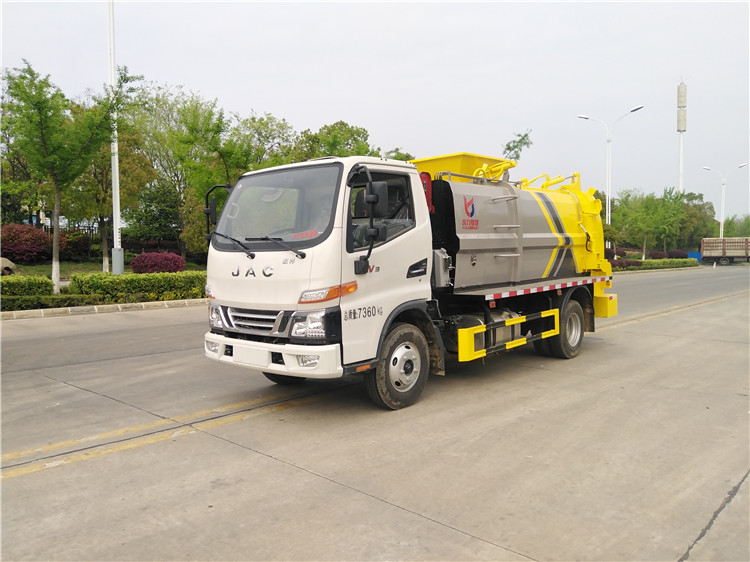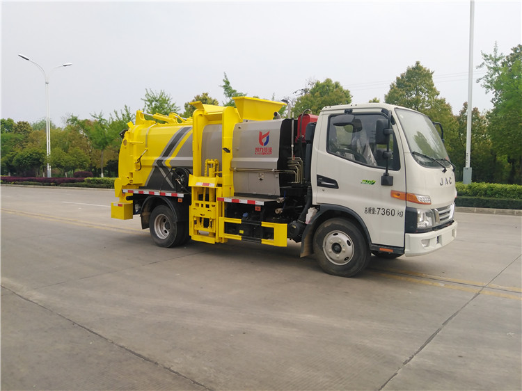 湖北程力國六江淮駿鈴5方餐廚垃圾車(方罐)程力威牌CLW5081TCAH6型餐廚垃圾車 廠家配置: 湖北程力國六江淮駿鈴6方餐廚垃圾車(方罐)底盤配置:江淮駿鈴V6駕駛室2071寬體,3365軸距,云內(nèi)德威163馬力D30TCIF2(120KW),六齒六檔變速箱,動轉(zhuǎn),中控鎖,電動玻璃,多功能方向盤,日間行車燈,空調(diào),斷氣剎,前橋3噸,后橋7.2噸,750R16LT 14PR鋼絲胎。 湖北程力國六江淮駿鈴6方餐廚垃圾車(方罐)改裝標(biāo)配:(1)弧形箱體,箱體材質(zhì)為4mm。(2)合肥皖液油泵,江蘇多路閥,國產(chǎn)液壓油缸。(3)推鏟卸料(不帶舉升功能),具有干濕分離功能。液壓后蓋,后蓋帶密封條。(4)后門液壓鎖緊。(5)拉桿式提升機(jī),掛240L標(biāo)準(zhǔn)塑料垃圾桶。進(jìn)料口蓋液壓開關(guān)。(6)駕駛室內(nèi)集中電控(提升機(jī)外部手動控制),后門鎖緊與后蓋開關(guān)的操作具有防誤操作。(7)箱體帶清洗裝置(液壓馬達(dá)帶動高壓泵、帶水箱) 湖北程力國六江淮駿鈴5方餐廚垃圾車(方罐)程力威牌CLW5081TCAH6型餐廚垃圾車圖片價格:
