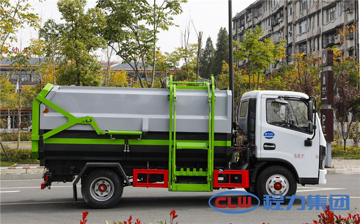 湖北程力國六東風(fēng)多利卡5方掛桶垃圾車(不帶壓縮)程力威牌CLW5071ZZZD6型自裝卸式垃圾車廠家配置: 底盤配置:東風(fēng)小多利卡國六5方掛桶垃圾車(不帶壓縮),采用東風(fēng)原裝底盤,D6系列新款駕駛室,采用東風(fēng)朝柴升級版CY4BK461國六排放發(fā)動機,95KW,130匹大馬力,萬里揚5擋變速箱,7.00鋼絲胎,國六車輛在國五基礎(chǔ)上增加了DPF顆粒捕捉器,多功能方向盤。 掛桶垃圾車是由密封式垃圾廂、液壓系統(tǒng)、操作系統(tǒng)組成,實現(xiàn)一車與多個垃圾桶聯(lián)合作業(yè),廂體上的液壓提升機裝置可將垃圾桶吊上、放下,上下升降。箱體采用Q235碳鋼板焊接而成,小多利卡、大多利卡為邊3底4mm厚度,3950軸距以上為邊4底5mm厚度,箱體底部油缸舉升自卸,側(cè)面提升機可選鏈條式、拉桿式,后門手動開啟加裝手電一體加一千,箱體加厚請電議。 湖北程力國六東風(fēng)多利卡5方掛桶垃圾車(不帶壓縮)程力威牌CLW5071ZZZD6型自裝卸式垃圾車多方位圖片;