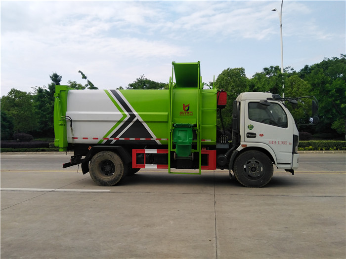湖北程力國(guó)六東風(fēng)大多利卡側(cè)裝掛桶自裝卸式垃圾車程力威牌CLW5122ZZZ6SL型自裝卸式垃圾車廠家配置: | 國(guó)六東風(fēng)大多利卡側(cè)裝壓縮掛桶自裝卸式垃圾車底盤配置:采用東風(fēng)原裝EQ1095SJ8CD2底盤,玉柴140馬力 (可選朝柴170、云內(nèi)150馬力),7.50R16鋼絲胎,氣剎,6檔變速箱 ,帶ABS,原裝空調(diào),電動(dòng)玻璃,中控鎖。
