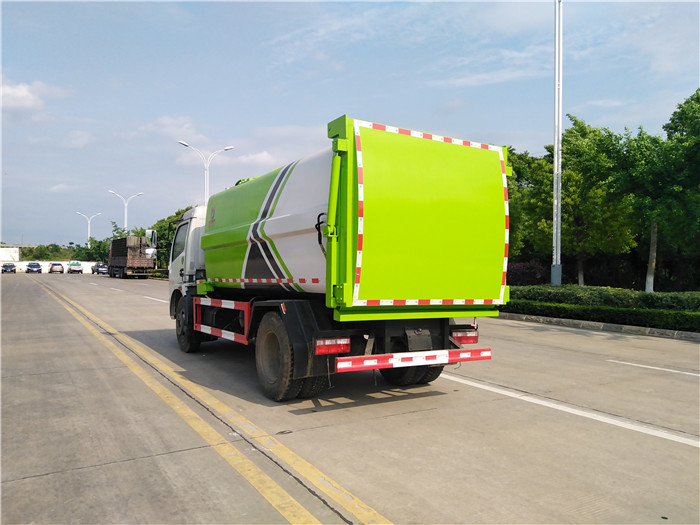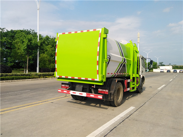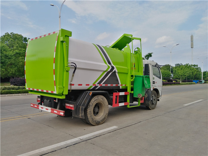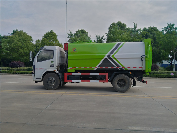 國(guó)六東風(fēng)大多利卡側(cè)裝壓縮掛桶自裝卸式垃圾車箱體為圓弧形新型加強(qiáng)型,箱體容積7.5 立方,壓縮方式為液壓底推推板,提升機(jī)為機(jī)拉桿式,后門液壓反向鎖死,箱體材料為Q345B錳鋼制作,材料厚度為4個(gè)厚,液壓閥為中梅或長(zhǎng)源牌,液壓缸為海普瑞斯,齒輪泵為合肥長(zhǎng)源牌,箱體尾部加裝污水槽,可有效防止垃圾二次污染。