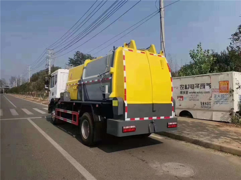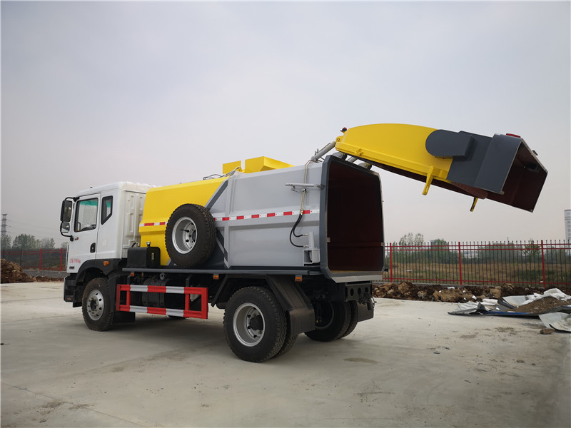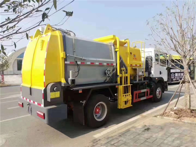 c、罐體容積8.5-10方,罐體帶舉升功能,后門液壓控制開啟關(guān)閉,帶液壓鎖緊功能,拉桿提升機(jī)聯(lián)動(dòng)頂蓋完美設(shè)計(jì),收集時(shí)滴水不漏。提升架可掛 120L/240L 標(biāo)準(zhǔn)塑料垃圾桶
