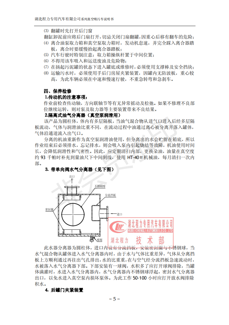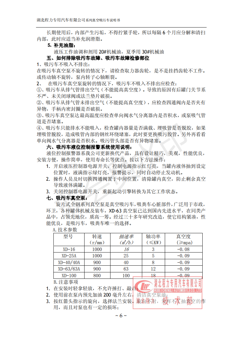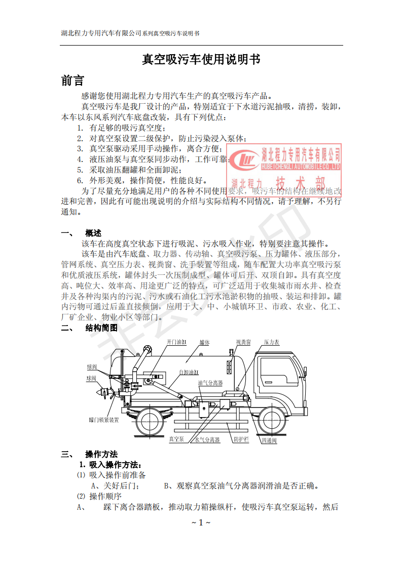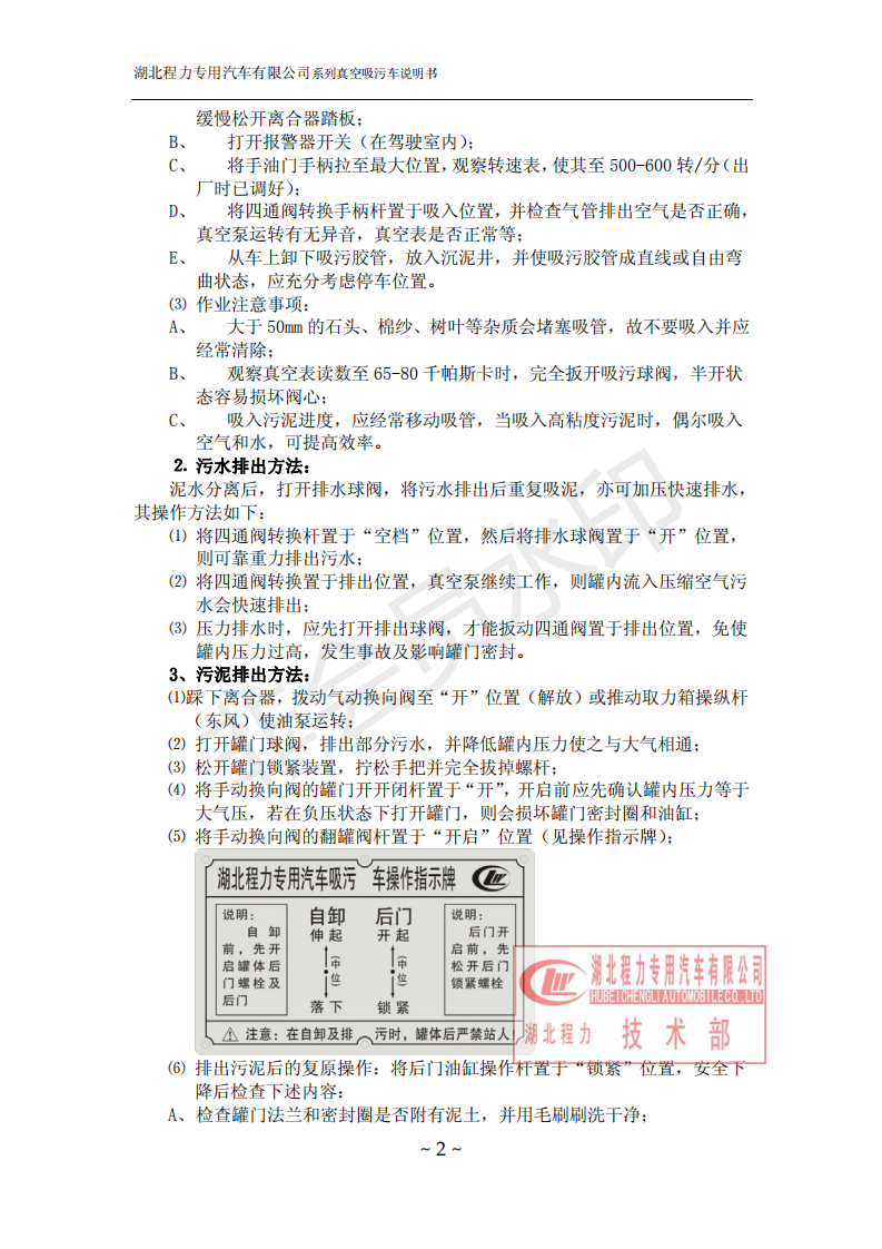 湖北程力環(huán)衛(wèi)吸糞吸污車使用說(shuō)明書(吸污車如何操作和注意事項(xiàng))