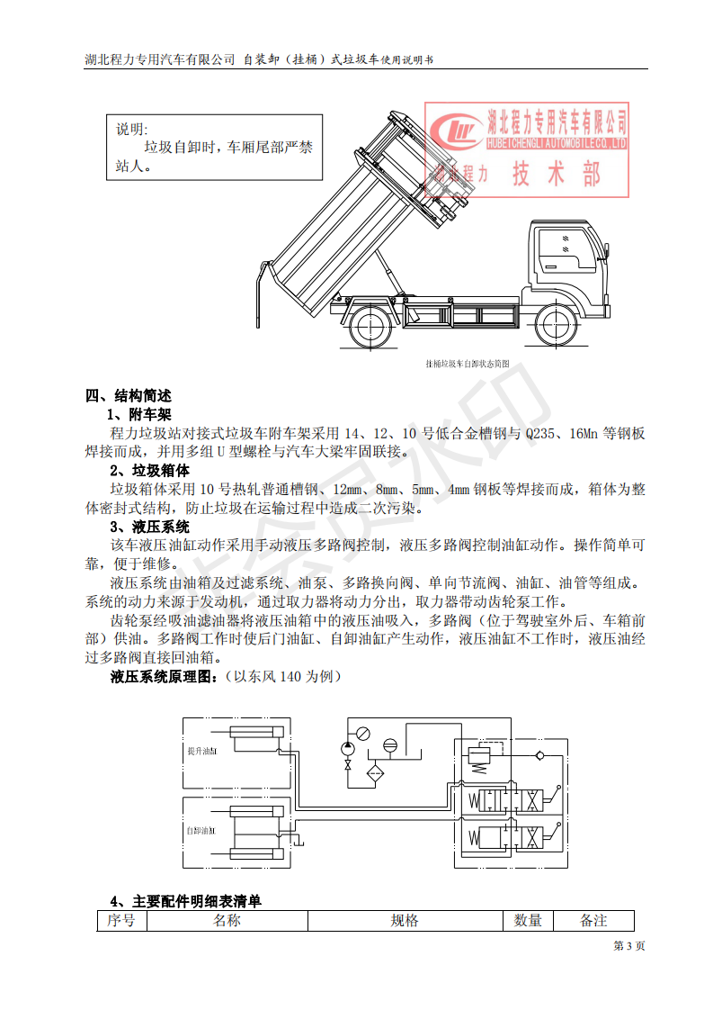 湖北程力自裝卸式垃圾車(掛桶式垃圾車)使用說明書