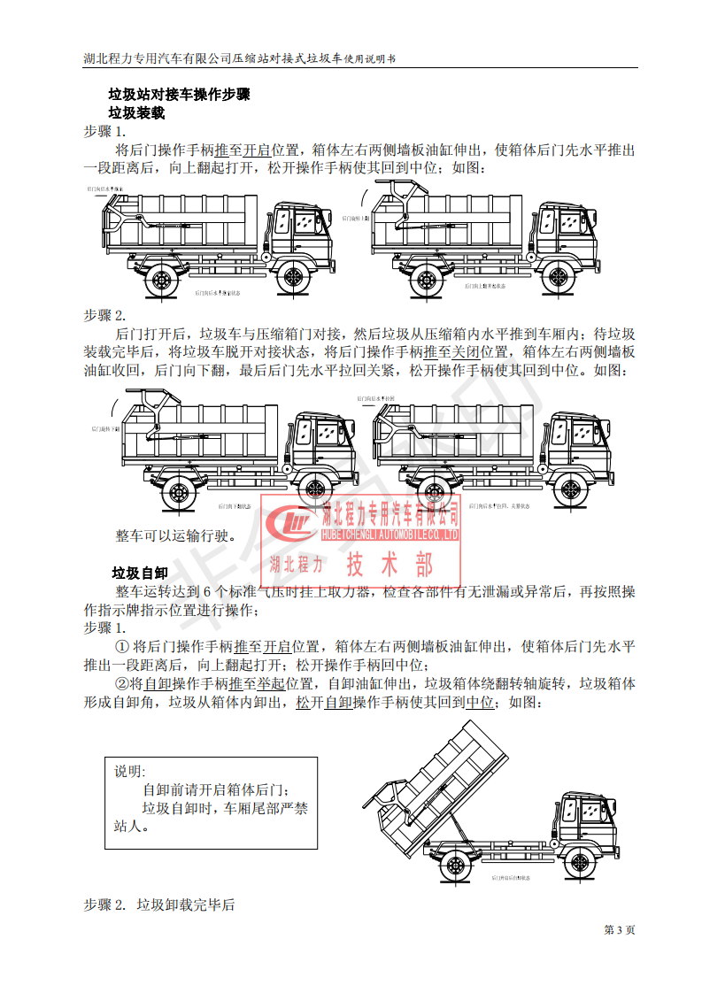湖北程力垃圾壓縮站對接式垃圾車使用操作說明書