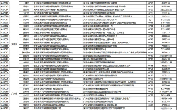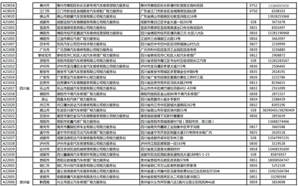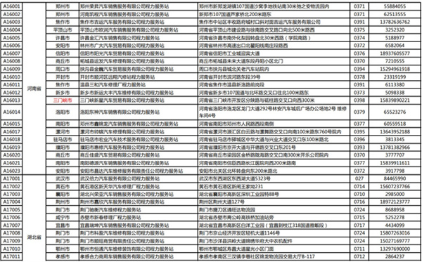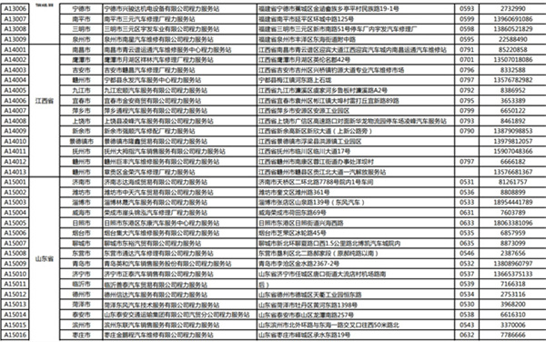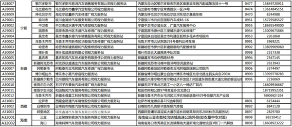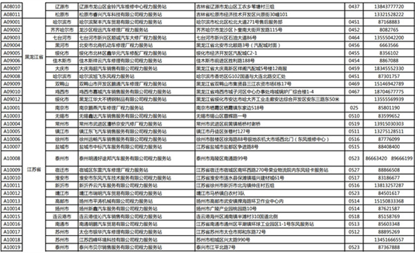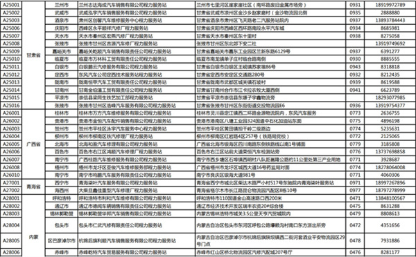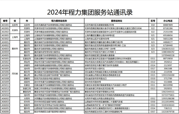 程力專用汽車股份有限公司(程力威)牌專用汽車全國(guó)服務(wù)站名錄