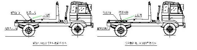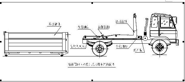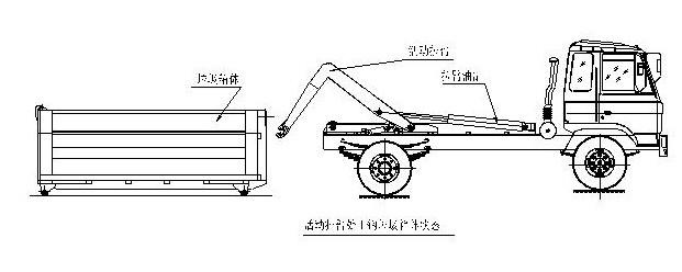 拉臂式垃圾車(車廂可卸式垃圾車)使用說明 一、概述 什么是勾臂垃圾車? 車廂可卸式垃圾車又稱拉臂式垃圾車(以下簡(jiǎn)稱垃圾車)是用于城鎮(zhèn)袋裝、散裝生活垃圾物的收集、運(yùn)輸、卸料作業(yè)的專用車輛。 該車是由汽車底盤、拉臂主油缸、附車架、翻轉(zhuǎn)架、支撐腿(選裝)、鎖緊架、鎖緊油缸及多路換向閥等組成。翻轉(zhuǎn)架一端連在附車架上,其另一端設(shè)有活動(dòng)拉臂,中間安裝有鎖緊系統(tǒng);活動(dòng)臂油缸一端連在活動(dòng)臂上,另一端連接在附車架上;鎖緊機(jī)構(gòu)通過鎖緊油缸的動(dòng)作可以在箱體自卸時(shí)將附車架上的箱體與翻轉(zhuǎn)架及拉臂連為一體,在主油缸伸出時(shí)形成自卸角,也可以通過鎖緊油缸的收回把翻轉(zhuǎn)架與附車架鎖緊為一體,利用主油缸的收回或伸出使活動(dòng)拉臂將地下的垃圾箱拖拉至附車架上或從附車架上放回到地面。 該車可將地下垃圾箱內(nèi)的垃圾及垃圾箱一同拉至車上運(yùn)走同時(shí)可自卸,降低了工人的勞動(dòng)強(qiáng)度。該垃圾車的收運(yùn)方式是目前世界上廣泛采用的垃圾收運(yùn)方式,可以實(shí)現(xiàn)一車多箱,大大降低了配備成本和空間等等;其專用裝置的功能均以汽車發(fā)動(dòng)機(jī)為動(dòng)力,通過液壓機(jī)構(gòu)手動(dòng)或電控來實(shí)現(xiàn)。車輛的箱體采用優(yōu)質(zhì)炭鋼板全密封焊接結(jié)構(gòu),具有強(qiáng)度高、重量輕、不產(chǎn)生二次污染等優(yōu)點(diǎn)。 二、結(jié)構(gòu)簡(jiǎn)圖 三、操作步驟 在裝載垃圾前,空載運(yùn)轉(zhuǎn)達(dá)到6個(gè)標(biāo)準(zhǔn)氣壓時(shí),掛上取力器(駕駛室內(nèi)方向盤左下方),檢查各部件有無泄漏或異常后,再按照操作指示牌指示位置進(jìn)行操作;其具體操作步驟如下: 拉起垃圾箱體 步驟1.將鎖緊鉤操作手柄推至收回位置,鎖緊油缸收回,使鎖緊架收回并將翻轉(zhuǎn)架與附車架鎖緊固定;如圖: 步驟2.將拉臂操作手柄拉起到伸起位置,拉臂油缸伸出,活動(dòng)拉臂繞翻轉(zhuǎn)翻轉(zhuǎn)架前鉸鏈軸旋轉(zhuǎn),拉臂處于鉤箱位置,適當(dāng)調(diào)整拉臂鉤高度并與箱體彎鉤對(duì)準(zhǔn);如圖:
