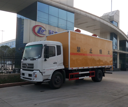 湖北程力國五天錦6.1米爆破器材運輸車(防暴車) 湖北程力生產的爆破器材運輸車防爆車均采用國際先進生產工藝,外形美觀,經久耐用。廂體采用可產生靜電屏蔽效應的冷扎鋼板,中間附以阻燃泡沫,內襯三合板,內飾高強度鋁合金,四層現(xiàn)代工藝復合而成。廂內安裝固定運載物的臥環(huán),防燃煙霧報警器,門上安裝防盜報警器,前置防撞防靜電膠皮。底部是防爆鋼板上墊防靜電膠皮。整車型號:CLW5160XQYD5,底盤型號:DFL1160BX1V,上黃牌。根據(jù)不同配置需求,防爆車價格有所浮動,具體參數(shù)配置請致電湖北程力銷售部熱線:0722-7029866