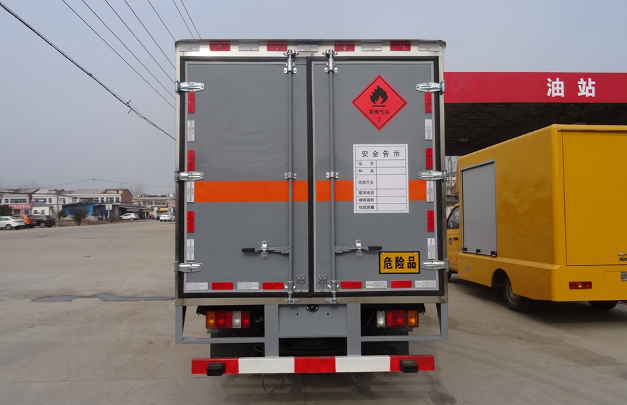 2類:獨立容器包裝的介質為:GB 12268-2012《危險貨物品名表》第2.1項的液化石油氣,壓縮天然氣氣瓶,2.2項中的氧氣,氮氣,二氧化碳氣瓶。 3類:獨立容器(瓶)包裝的乙醛,甲(乙)苯,丙酮,樟腦油,二硫化碳,二丁醚,煤油,甲(乙)醇,液體粘合劑,涂料或涂料溶液,甲醛溶液,印刷油墨或相關材料等.運輸介質類別:3。 廂體工藝材質: 1、廂體部分:廂體為雙層金屬骨架結構,外部為冷扎鋼板,內壁采用鋁合金板蒙面,夾層為隔熱阻燃材料填充。設置對開門,側壁設有防雨功能自然通風窗口,以使廂內外空氣流動,廂體內部做防靜電處理,廂體底部與廂內前部鋪有阻燃導靜電膠板,并與底盤等電位連接,通過車輛后端的導靜電裝置與大地相連,可防止靜電火花的產(chǎn)生和車輛靜電及時釋放,提高易燃氣體廂式運輸車的安全性。廂體內部前面和側面裝有固定拉環(huán),與捆綁帶使用捆綁貨物以避免移動,保證安全。 2、 防漏報警器:是感測車廂內火情的專用裝置,安裝在車廂內頂部,并與駕駛室內報警裝置連接,當有火情煙霧出現(xiàn),在駕駛室進行蜂鳴報警通知駕駛員,保證及時消除險情。 3、防盜報警器:為了保證安全,在車廂后方和側面開設有門,在各門器框上方安裝有門磁開關報警器(根據(jù)用戶要求選裝防盜監(jiān)視器。行車記錄儀等)當廂門被打開時,駕駛室內的蜂鳴器發(fā)出報警聲音,不使用時可將駕駛室內的控制開關關閉?杀WC在行駛過程中,整車始終處于受控狀態(tài)。 4、整車發(fā)動機排氣裝置采用前置式,并安裝有排氣火花熄滅器(防火罩),防止熱源對爆炸物產(chǎn)生不良影響。 5、底盤上裝有兩條拖地導靜電膠帶,廂體外側安裝示廓標記燈以及手提滅火器等安全裝置。 6、車身顏色為黃色,并有“嚴禁煙火”和“易燃”字樣,貼有反光標識。 底盤配置: 采用五十鈴600P底盤,五十鈴120馬力國五柴油發(fā)動機,5檔變速箱,7.00鋼絲胎,前橋盤式制動,前置排氣管,ABS,限速80Km。 |