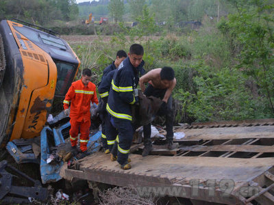 消防官兵到達(dá)現(xiàn)場(chǎng)后,發(fā)現(xiàn)一輛貨車車頭直接扎入溝中,在貨車上的挖掘機(jī)側(cè)翻在一旁,當(dāng)?shù)嘏沙鏊?20急救人員已經(jīng)趕到了現(xiàn)場(chǎng)。見此情形,消防官兵迅速展開營救,但由于貨車狠狠的撞在田埂上,駕駛室已經(jīng)嚴(yán)重變形,消防官兵利用液壓剪擴(kuò)鉗、液壓撐頂器等破拆工具均未能使駕駛室有效擴(kuò)張,而且挖掘機(jī)隨時(shí)有壓下來的危險(xiǎn)。于是,中隊(duì)指揮員立即協(xié)調(diào)公安部門,將附近的一輛挖掘機(jī)借調(diào)過來,配合消防官兵實(shí)施營救。 挖掘機(jī)到位后,指揮員立即下令挖掘機(jī)將貨車車身往后牽引,使車頭留有救援空間供消防官兵救援。命令下達(dá)后,救援人員各司其職,迅速的投入到戰(zhàn)斗中去。 19時(shí)05分,通過消防官兵1個(gè)多小時(shí)的緊張救援,貨車司機(jī)被成功救出,但由于撞擊嚴(yán)重,被困時(shí)間過長,醫(yī) |