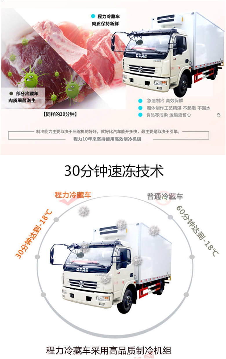 上裝配置: 箱體采用三明治結(jié)構(gòu),內(nèi)外采用冷藏車專用玻璃鋼(可反射陽光可選用不銹鋼),中間保溫層采用聚氨酯發(fā)泡隔熱材料,18米罐注一次成型,產(chǎn)品重量輕,漏熱率(導(dǎo)熱系數(shù))低,強(qiáng)度高,保溫效果好,廂體美觀大方扎實(shí)耐用。廂體厚度8CM.廂體全為不銹鋼鎖件,鋁合金包角,廂體可選裝通風(fēng)槽、開側(cè)門等。根據(jù)需要可選裝配國內(nèi)外知名制冷機(jī)組(溫度達(dá)到保鮮或冷凍要求),可根據(jù)您的需求進(jìn)行定制生產(chǎn)。 溫馨提示: 整車合格證、底盤合格證、全國統(tǒng)一機(jī)動(dòng)車發(fā)票、隨車工具、車輛質(zhì)保手冊(cè)、全國服務(wù)站點(diǎn)目錄。 底盤及冷藏機(jī)組全國聯(lián)保,全國各地均有保修點(diǎn),冷機(jī)故障可在車輛所在地保修.