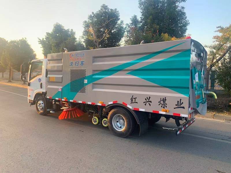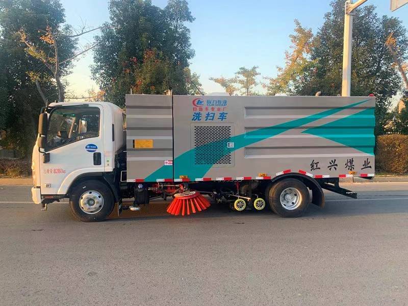 KV100P/KV600底盤配700P駕駛室:120馬力國六五十鈴4KH1CN6LB發(fā)動(dòng)機(jī)配五十鈴5檔變速器,或132馬力國六4KH1CN6HB發(fā)動(dòng)機(jī)配五十鈴6檔變速器,帶空調(diào),方向助力,多功能液晶儀表盤,前橋3噸,后橋5噸,帶ABS,斷氣剎(或者油剎),駕駛室可翻轉(zhuǎn),700副梁車型標(biāo)配700R16輪胎車架幅高176MM,800副梁車型標(biāo)配750R16輪胎車架幅高216MM。 湖北程力國六五十鈴8方洗掃車慶鈴五十鈴洗掃車配置: 1、帶2個(gè)中置掃盤;中置超寬吸嘴;江鈴64kW增壓副發(fā)動(dòng)機(jī);臺灣液壓閥;大力馬達(dá);德國高壓水泵;威龍低壓泵;3mm不銹鋼垃圾箱;不銹鋼水箱;德國控制器;尾部箭頭燈;機(jī)油、垃圾箱、水箱均帶防溢或低位報(bào)警裝置;倒車及洗掃狀態(tài)室內(nèi)監(jiān)視器;多種語音提示;防傾倒垃圾翻車保護(hù)、檢修安全保護(hù);20m高壓沖洗卷盤;刷臂轉(zhuǎn)動(dòng)機(jī)構(gòu)使用德國進(jìn)口高新耐磨工程隔套,免打黃油;精密冷彎無縫液壓油管;CAN總線運(yùn)動(dòng)控制器一鍵電腦控制。 2、洗掃寬度3.2m;吸入粒度φ110mm。 多功能洗掃車具有路面清洗、路面清掃、路緣清洗、路緣和路緣石立面洗刷、低壓沖刷、噴霧除塵等多功能。有“全洗掃”、“左洗掃”、 “右洗掃”、 “全掃”、 “左掃”、 “右掃”等多種作業(yè)方式可選擇。選擇“全洗掃”方式清洗廣場和路面,清洗效率高作用好,洗凈率達(dá)90%以上。選擇“左洗掃”或“右洗掃”方式清洗路面和路緣、洗刷路緣石立面。需求進(jìn)行路面清掃或路面保潔作業(yè)時(shí),可選擇掃路方式。需求噴霧除塵時(shí),可敞開噴霧設(shè)備,進(jìn)行噴霧除塵作業(yè)?梢韵駷⑺囅嗤瑢β访孢M(jìn)行低壓沖刷作業(yè)。 湖北程力國六五十鈴8方洗掃車多方位圖片: 湖北程力國六五十鈴8方洗掃車多功能洗掃車適用于城市道路、高速公路、廣場、機(jī)場、碼頭、遂道、橋梁、隔絕墻面、路緣和路緣石立面的機(jī)械化清洗、清掃、噴霧降塵等清潔作業(yè)。