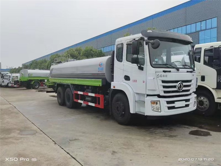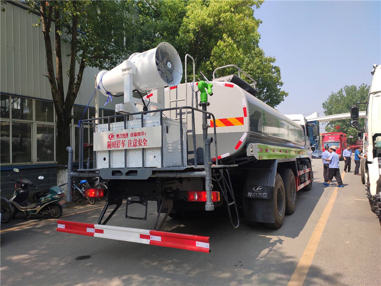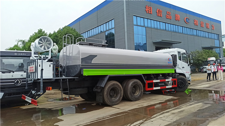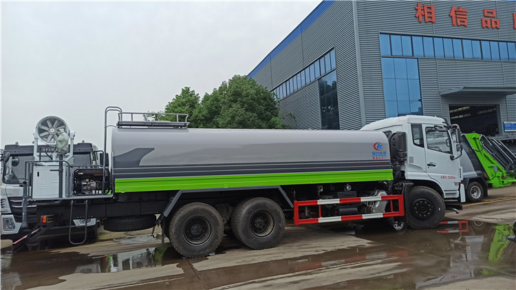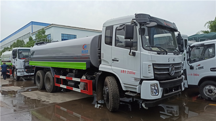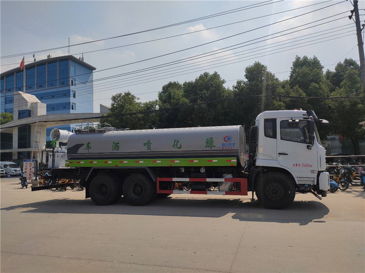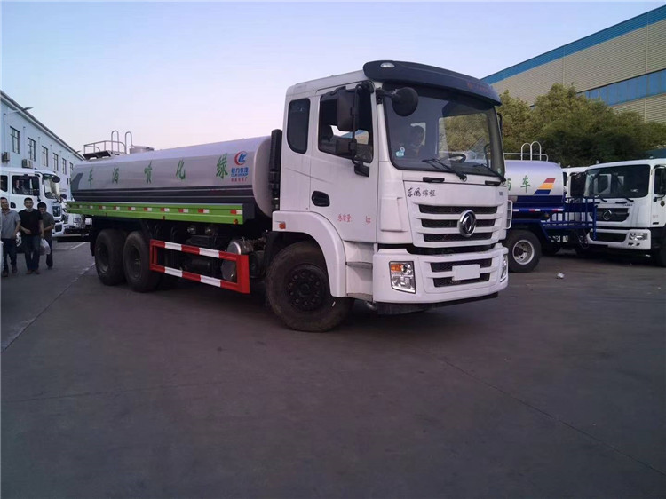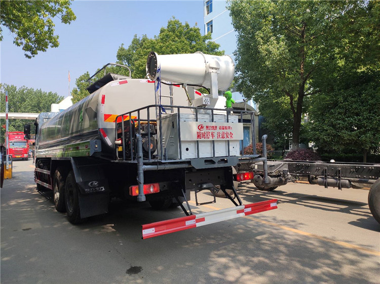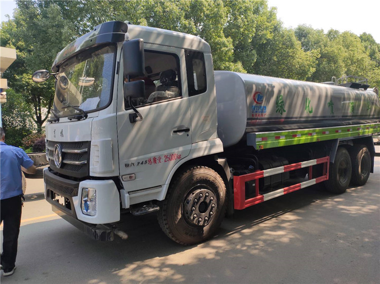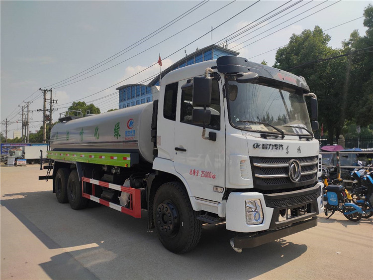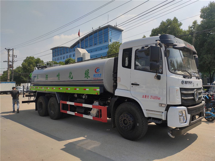 湖北程力國六東風(fēng)錦程V6后雙橋18噸灑水車程力威牌CLW5253GPSD6型綠化噴灑車廠家配置: | 湖北程力國六東風(fēng)錦程V6后雙橋18噸灑水車底盤配置:采用東風(fēng)后雙橋原裝底盤,東風(fēng)錦程齊星軍工V6四點(diǎn)懸浮駕駛室,4350+1350mm軸距,搭載國六(國Ⅵ)東風(fēng)康明斯230/260馬力柴油發(fā)動(dòng)機(jī),功率169/191kw,國六排放,陜齒法士特八檔變速箱,11.00R20鋼絲胎,前橋5T,后橋雙10T,方向助力,斷氣剎,排氣制動(dòng),原裝空調(diào),行駛記錄儀,多媒體顯示屏,電動(dòng)門窗,中控鎖,氣囊座椅,ABS。湖北程力國六東風(fēng)錦程V6后雙橋18噸灑水車專用配置:罐體容積:19立方米,罐體鋼板為4mm碳鋼Q235材質(zhì)專用容積板一次成型,罐內(nèi)隔板具有防波作用,以減輕汽車行駛時(shí)罐體液體沖擊;配大功率專用灑水泵,泵可自吸自排;整車前沖、后灑、側(cè)噴、后平臺帶綠化灑水炮,灑水炮可全方位旋轉(zhuǎn),可連續(xù)調(diào)成直沖狀、大雨、小雨、毛毛雨;前封頭帶水位計(jì),后平臺主管路帶1寸澆花接口,后爬梯,帶1個(gè)消防接頭,帶1個(gè)自流閥,1個(gè)過濾裝置。湖北程力國六東風(fēng)錦程V6后雙橋18噸灑水車選裝配置:1、可選裝氣動(dòng)球閥開關(guān)駕駛室內(nèi)控制; 2、可選裝后平臺帶CLW-30、40型霧炮機(jī)組