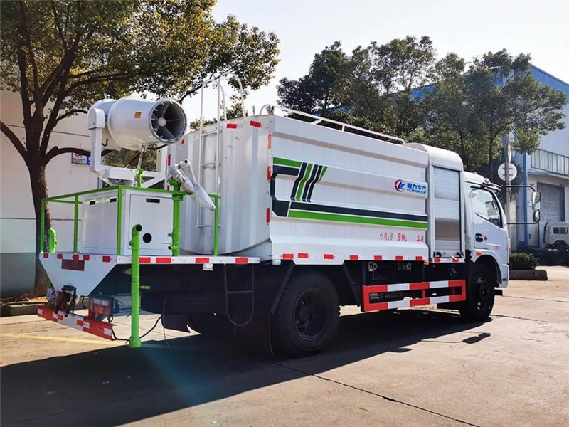 國六東風(fēng)多利卡D7程力霧炮車抑塵車罐體容積:6.5-8立方,罐體鋼板采用Q235碳鋼鋼材,采用方形瓦楞設(shè)計,外觀大氣靚麗,后工作平臺加裝高效率車載式風(fēng)送噴霧機,噴藥炮霧化效果好,可遠程噴霧,東風(fēng)多利卡福瑞卡抑塵車帶前沖后灑、側(cè)噴、平臺高炮、自流閥及消防接頭各1個、標(biāo)配億豐泵或金龍泵 ,可選裝50-100米噴霧機。 程力抑塵車霧炮車噴霧機配置:TDM-M08型,可無線遙控操作,及手動操作。根據(jù)需求選配的霧炮機霧化距離在30-60米不等(靜風(fēng)室內(nèi)距離)實際射程:(霧化射程會受濕度、溫度、風(fēng)速等各方面天氣因素的影響,另外天氣干燥地區(qū)一部分在空中被蒸發(fā)掉)。