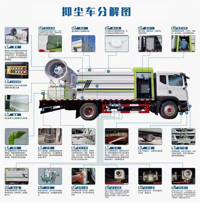 湖北程力國六東風(fēng)天錦60-100米抑塵車(方罐)程力威牌CLW5181TDYD6型多功能抑塵車廠家配置: 湖北程力國六東風(fēng)天錦抑塵車底盤配置:底盤采用東風(fēng)天錦國六底盤,公告型號:CLW5181TDYD6,康明斯6缸ISB210馬力發(fā)動機,4700軸距,275真空胎,6檔變速箱,原裝空調(diào),ABS。 湖北程力國六東風(fēng)天錦抑塵車上裝配置:罐體容積11.3立方,罐體為方形罐,罐體內(nèi)部做防腐,罐體鋼板采用Q235碳鋼鋼材,整車具備灑水車的一切功能(前沖、后灑、側(cè)噴、平臺高炮),氣動球閥控制灑水功能,水位報警器,標(biāo)配億豐60/90水泵,自流閥及消防接頭各1個、水管2根。后平臺安裝一臺60米霧炮。 湖北程力國六東風(fēng)天錦抑塵車霧炮參數(shù):CLW-100型60米,副發(fā)電機組功率50(Kw),風(fēng)機功率15(Kw),不銹鋼多級離心泵功率5.5(Kw)。100米無線遙控操作,霧化距離60米(靜風(fēng)室內(nèi)距離)實際射程:(霧化射程會受濕度、溫度、風(fēng)速等各方面天氣因素的影響,另外天氣干燥地區(qū)一部分在空中被蒸發(fā)掉)。 | 湖北程力國六東風(fēng)天錦60-100米抑塵車(方罐)程力威牌CLW5181TDYD6型多功能抑塵車圖片價格: