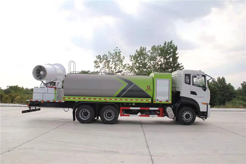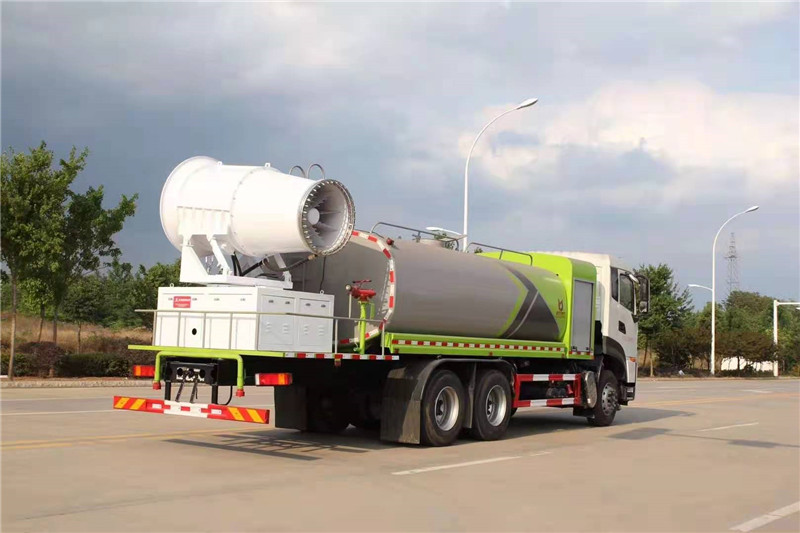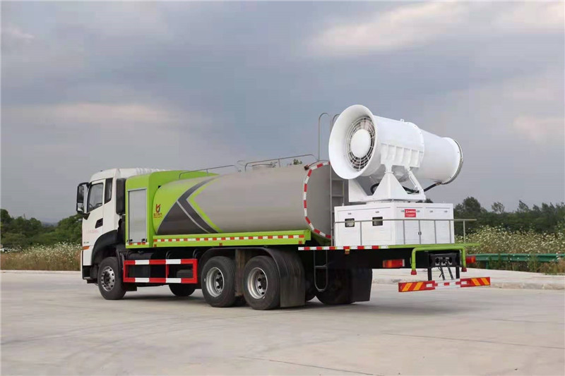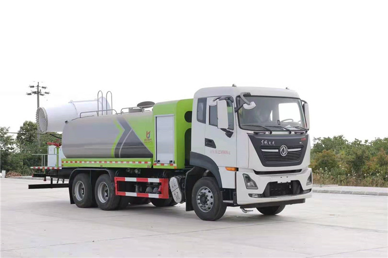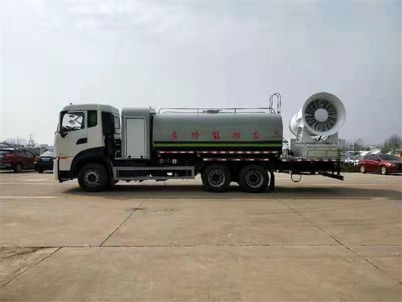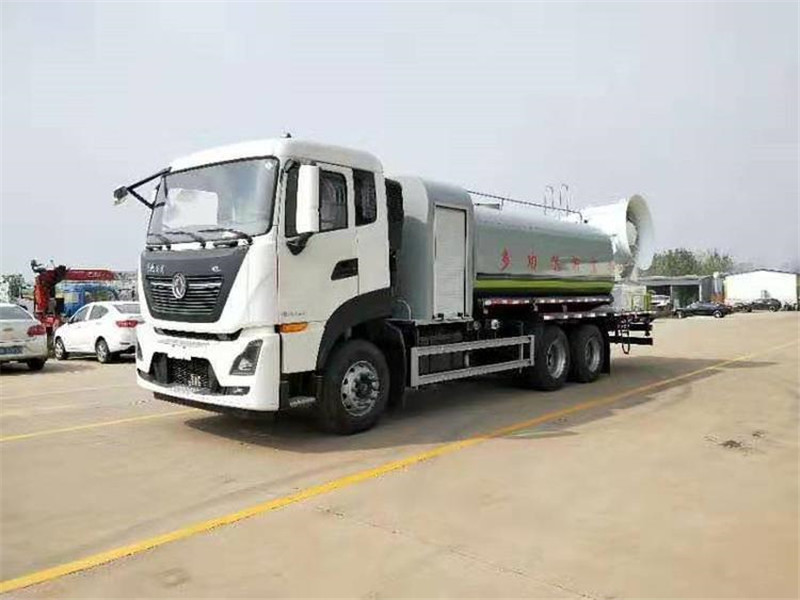 程力專用汽車股份有限公司國六東風天龍后雙橋多功能抑塵車,采用東風天龍后雙橋底盤,配國六康明斯290/300/350馬力發(fā)動機,4350+1350mm軸距,11.00R20鋼絲輪胎,陜齒9檔變速箱,7噸前橋,10噸后橋,助力轉向,電動玻璃,斷氣剎,原廠空調(diào),氣囊座椅,ABS,定速巡航,行車記錄儀等。罐體容積16噸,罐體采用外防銹內(nèi)防腐處理,武鋼5mm優(yōu)質(zhì)碳鋼板制成。進水方式可自抽,消防接口,罐頂自流三種方式,標配前沖后灑,側噴花灑,罐體后工作平臺,平臺上安裝灑水炮和車載噴霧炮,雙炮均可全方位旋轉,霧化效果可調(diào)節(jié),可選配60--120米噴霧機。